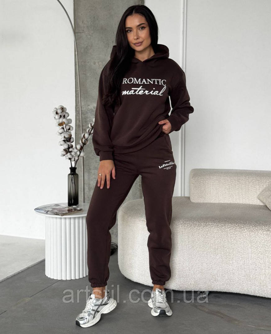 Утеплений спортивний жіночий костюм з начосом темно-коричневого кольору "Romantic Material"